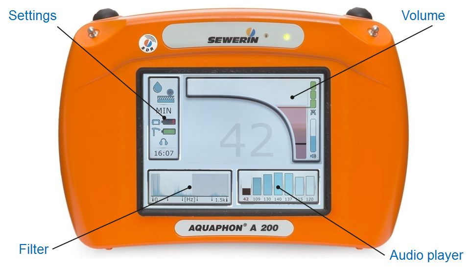 - The AQUAPHON® A200 receiver indicates a precise optical comparison of the noise intensities.