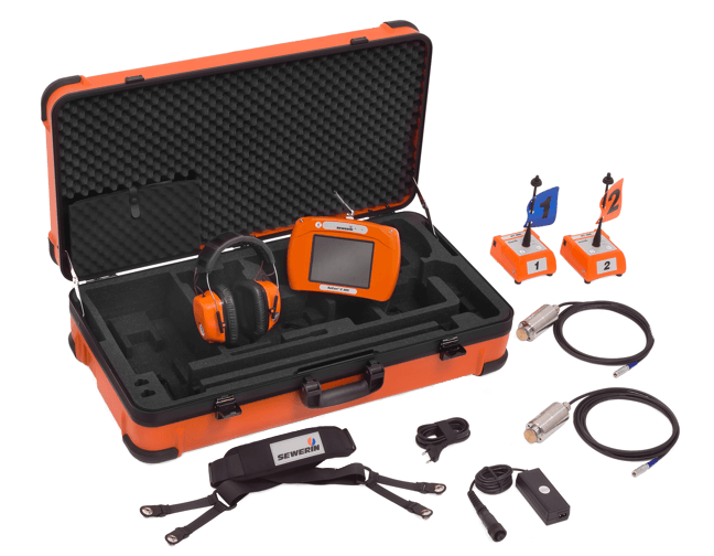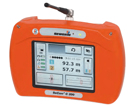 The SeCorr C200 water leak correlator is the newest and most capable correlator ever produced by Sewerin. The SeCorr C200 platform offers a large 5.7' high-resolution VGA display, a touchscreen that can be reliably operated with gloves and an operating system that is clearly laid out and easy to operate. The SeCorr C200 is lightweight and ergonomic. Its strong triangular belt enables it to be carried effortlessly. Wireless headphones provides complete "cable-free" operation. The new RT 200 radio transmitters feature 500 mW high-performance transmission paths and built-in light. The RT 200 radio transmitters turn-on as soon as the microphone is plugged in. The tough carry case provides for recharging with a single mains plug in.